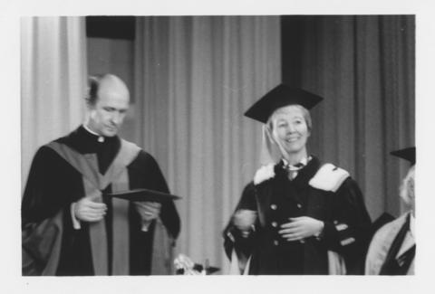 Archbishop Hayes and Sister Catherine Wallace (President) at Convocation ceremonies.